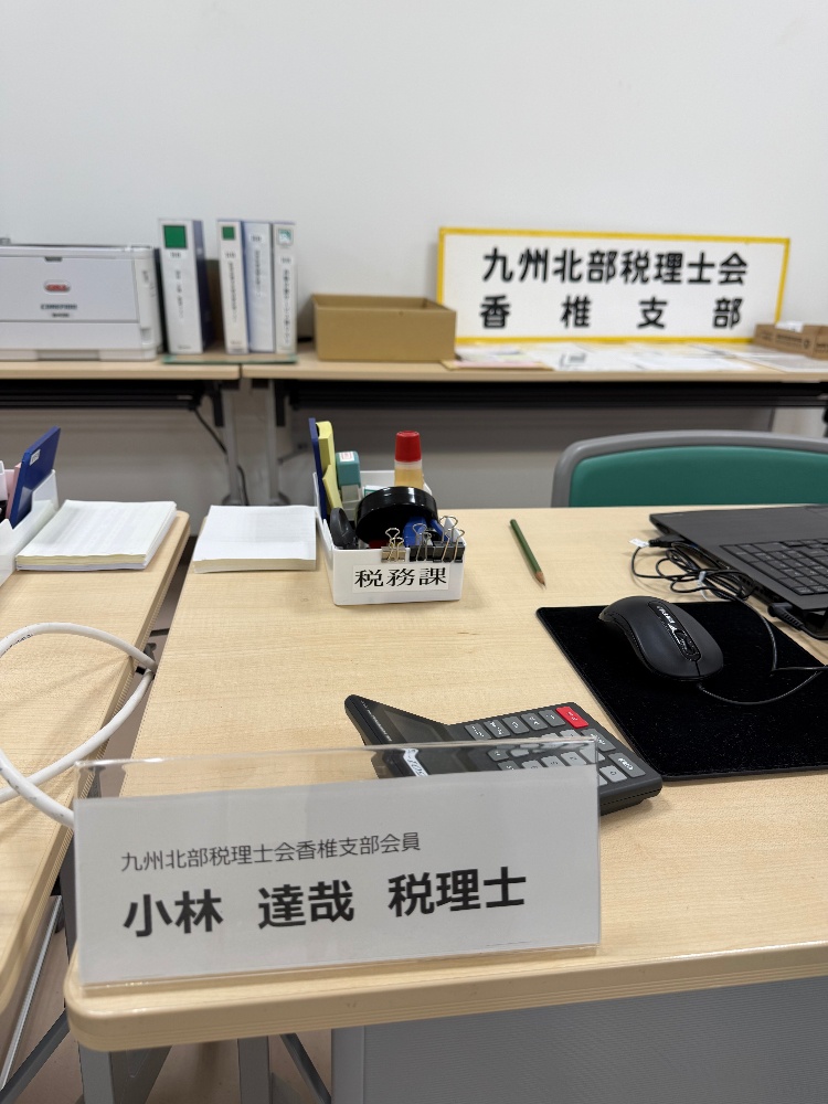 2/18と2/25,2/26に福津市役所別館での確定申告会場にて、所長の税理士小林達哉と小林麟太郎職員の2名で、福津市民の皆様の申告援助を行いました。
